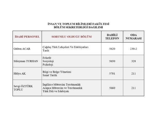 Bölüm Sekreterliği Dağılımı